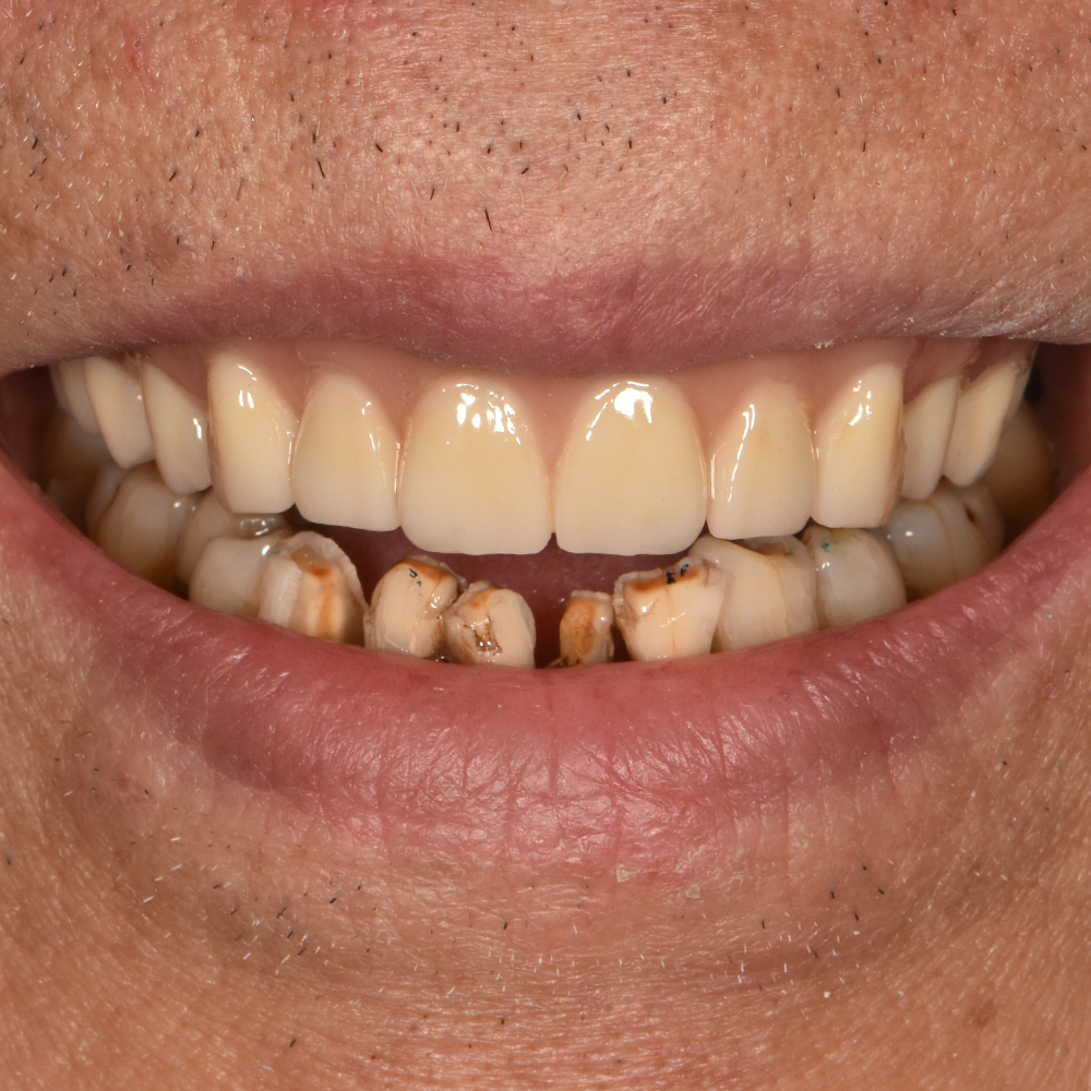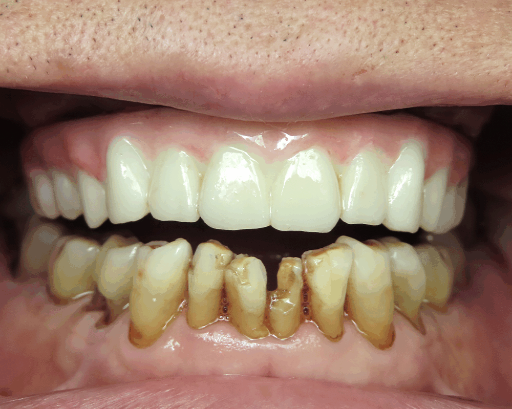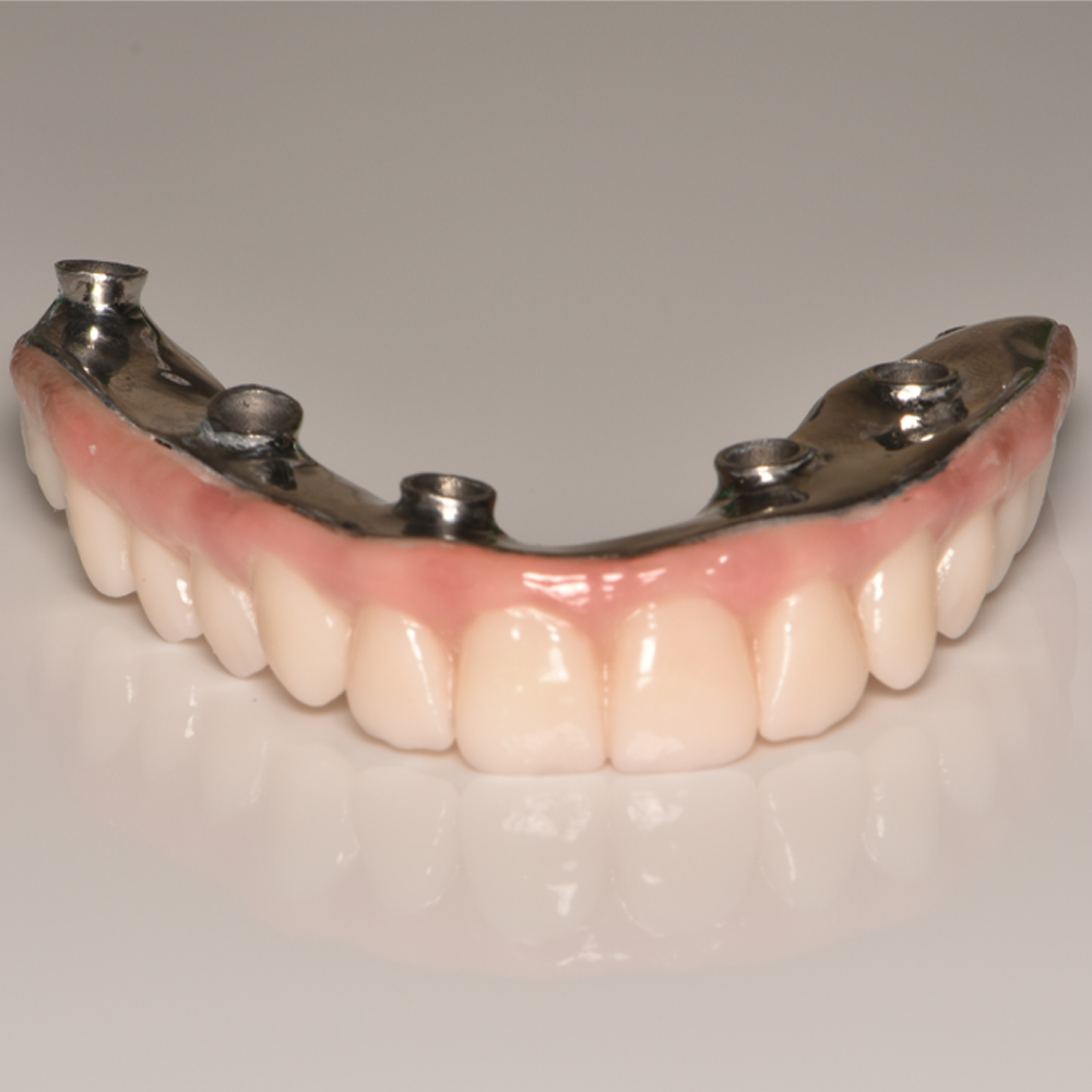 Gallery Teethin a Day Bar Hybrid Finals Zirconia Finals Forever SmilesTeeth in a DayChairside pickups and temporary prototypes that were done the day of surgery. Bar Hybrid FinalsHybrid Bar finals. Acrylic wrapped titanium bars with teeth milled in PMMA. Zirconia FinalsFull Zirconia finals, milled in porcelain fused to zirconia, stained, and glazed. Forever SmilesTeeth before and after for a patient, from failing dentition to final restoration.